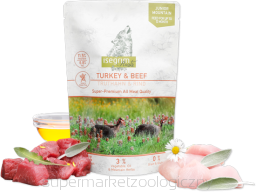 ISEGRIM JUNIOR Indyk + wołowina ze słodkimi ziemniakami, olejem z łososia i ziołami górskimi 410g