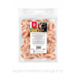 MACED Naturalna przekąska PREMIUM dla psów w formie pierścieni, wykonana w 100% ze świeżego mięsa oraz składników najwyższej jakości. Pierścienie z kurczakiem i rybą to miękki przysmak w postaci pasków ryby oblanych mięskiem kurczaka oraz zawiniętym w pierścień. Forma pierścienia zaspokaja potrzebę żucia i sprawdza się jako zajęcie do nawet kilku minut. Jednocześnie psiak wzmacnia dziąsła i czyści zęby.