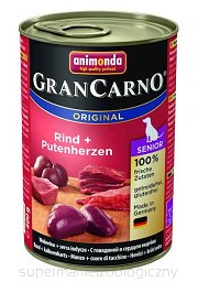 GranCarno Senior to zbilansowany, smakowity zdrowy pokarm najwyższej jakości dla dorosłych psów w wieku od 7 lat. Wybrane, świeże mięsne surowce gwarantują nieporównywalny smak, który psy tak bardzo cenią. GranCarno Senior dostarcza starszemu psu wszystkie ważne dla życia składniki pokarmowe i jest dokładnie dostosowany do specjalnych potrzeb żywieniowych psów seniorów.