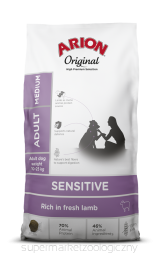 Arion Original Sensitive Adult Medium (lamb) to pełnowartościowa karma dla psów dorosłych ras średnich, ze świeżą jagnięciną. Jej bezglutenowa, monobiałkowa receptura zawiera mieszankę najlepszego naturalnego błonnika i pre-biotyków, które ułatwiają trawienie, oraz mieszankę chondroprotektorów dla wsparcia stawów.