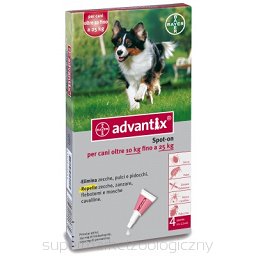 BAYER Advantix spot on to preparat dla psów przeciw kleszczom i pchłom, przeznaczony dla psów o masie 10-25kg