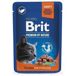 BRIT Premium Salmon for sterylised to karma klasy premium, idealnie nadająca się dla dorosłych kotów po sterylizacji lub z nadwagą. Pyszna i zdrowa, jest idealna dla kocich smakoszy. Dostarcza kotu wszystkich potrzebnych mu witamin i minerałów.