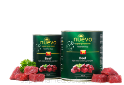 Bezzbożowa mokra karma NUEVO Wołowina charakteryzuje się wysoką zawartością mięsa (72%) i cennego białka. Karma ta jest idealnie zbilansowanym pokarmem dla psów oferującym odpowiednią zawartość składników odżywczych oraz niezbędnych witamin i minerałów. Karma nuevo Wołowina stanowi doskonałe źródło energii, jest bardzo dobrze trawiona i wyjątkowo smaczna.