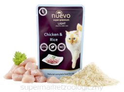 Receptura karmy nuevo Light została opracowana specjalnie dla kotów z tendencją do nadwagi. Cechuje ją niska zawartość tłuszczu na poziomie zaledwie 3,9% i niska zawartość białka na poziomie 8,6%. Mniej kalorii pozwala kontrolować przyrost masy ciała w zdrowy i bezpieczny sposób.