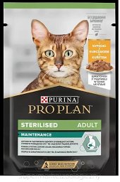 Karma mokra dla kotów sterylizowanych PRO PLAN Sterilised Adult MAINTENANCE, Delikatne kawałki z Kurczakiem w sosie.