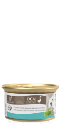 Skład: mięso i podroby (100% gęsi), minerały, dekstroza, mąka łubinowa, olej słonecznikowy. DODATKI NA KG: Dodatki dietetyczne: 3a672a/witamina A 1220 j.m., 3a671/witamina D3 150 j.m., 3a700/witamina E 11 mg, 3c440/L-tryptofan wytwarzany w drodze fermentacji z E. coli KCCM 11132P 31,57 mg, tauryna 490 mg, 3b405 (Miedź 1,2 mg). Dodatki organoleptyczne: wyciąg z liści melisy lekarskiej 18,96 mg, wyciąg z korzenia kozłka lekarskiego 15,79 mg, nalewka z zingiber officinale 12,0 mg. Wilgotność: 81,0%.