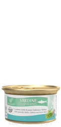 Skład: ryby (Sardynki 100%), Oleje i tłuszcze (olej słonecznikowy), minerały, produkty pochodzenia roślinnego. DODATKI NA KG: Dodatki dietetyczne: 3a671c/wit.D3 112,50 j.m., 3b605/cynk 2,75 mg, 3b201/jod 0,38 mg, 3b503/mangan 1,13 mg, 3a370 tauryna 116,25 mg, 3c440/l-tryptofan 21,05 mg Dodatki organoleptyczne: ekstrakt Valeriana Officinalis 10,53 mg, ekstrakt Melissa Officinalis 12,64 mg, ekstrakt Zingiber Officinalis 8mg. Dodatki technologiczne: guma kasja 1062,50 mg.