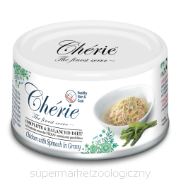 Pettric cherie karma w puszce dla kota- kurczak ze szpinakiem w sosie 80g (skóra i sierść)